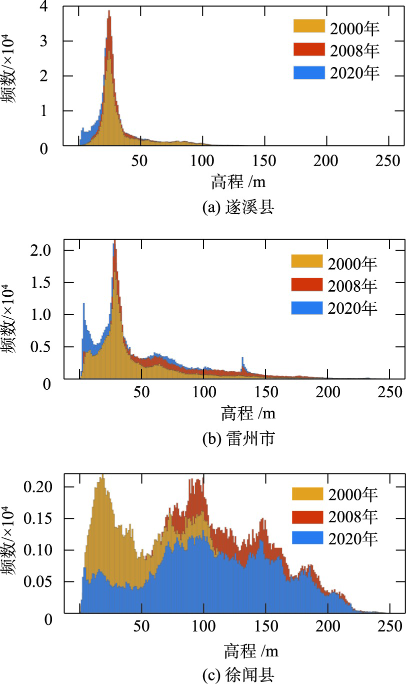 | 图14 遂溪县、雷州市、徐闻县甘蔗种植区高程统计分布 |