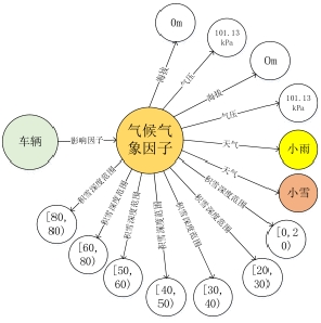 | 气象因子 | 海拔高度0 m,大气压101.13 kPa,车辆速度效率100% | Vehicle(?x)^Altitude(?h)^Pressure(?p)^Speedefficiency(?v)^hasAltitude(?x,?h)^hasPressure(?x,?p)^swrlb:equal(?h,0)^swrlb:equal(?p,101.13)→hasSpeedefficiency (?x,100%) | ![]() |
