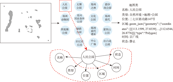 知识图谱是人工智能领域的一种知识表示方法,目标是实现机器的认知智能,核心是将多源异构数据通过抽取、建模与表示形成知识库,在数据关联搜索、智能问答、决策分析等方向大放异彩。在军事领域,主要利用知识图谱对军事装备知识[3]、军事知识的组织[4]、目标知识图谱构建等进行了深入研究,用于作战方案的智能匹配[5],海空目标智能综合识别[6],军事知识自然语言问答等领域。对知识图谱的研究与应用,是军事智能化发展的必然趋势,但对战场环境知识图谱的构建和应用还未成体系地进行研究。地理知识图谱的研究[7⇓-9]旨在解决“地理信息爆炸,知识匮乏”的问题,其中地理知识本体模型构建[10]、事件知识表示、地理知识抽取[11]、存储索引[12⇓-14]与智能服务等方面的研究,对战场环境知识图谱研究具有一定的借鉴意义。然而,大多数的知识表示模型多是采用三元组表示,三元组的表示方法会使得战场环境知识碎片化比较严重,难以体现战场环境知识的时序特点和场景特点[16]。